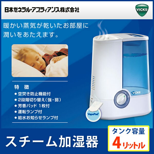 スチーム式加湿器 VICKS ビックス MODEL V750 適用畳数5畳〜8畳 大容量 4L スチーム加湿器